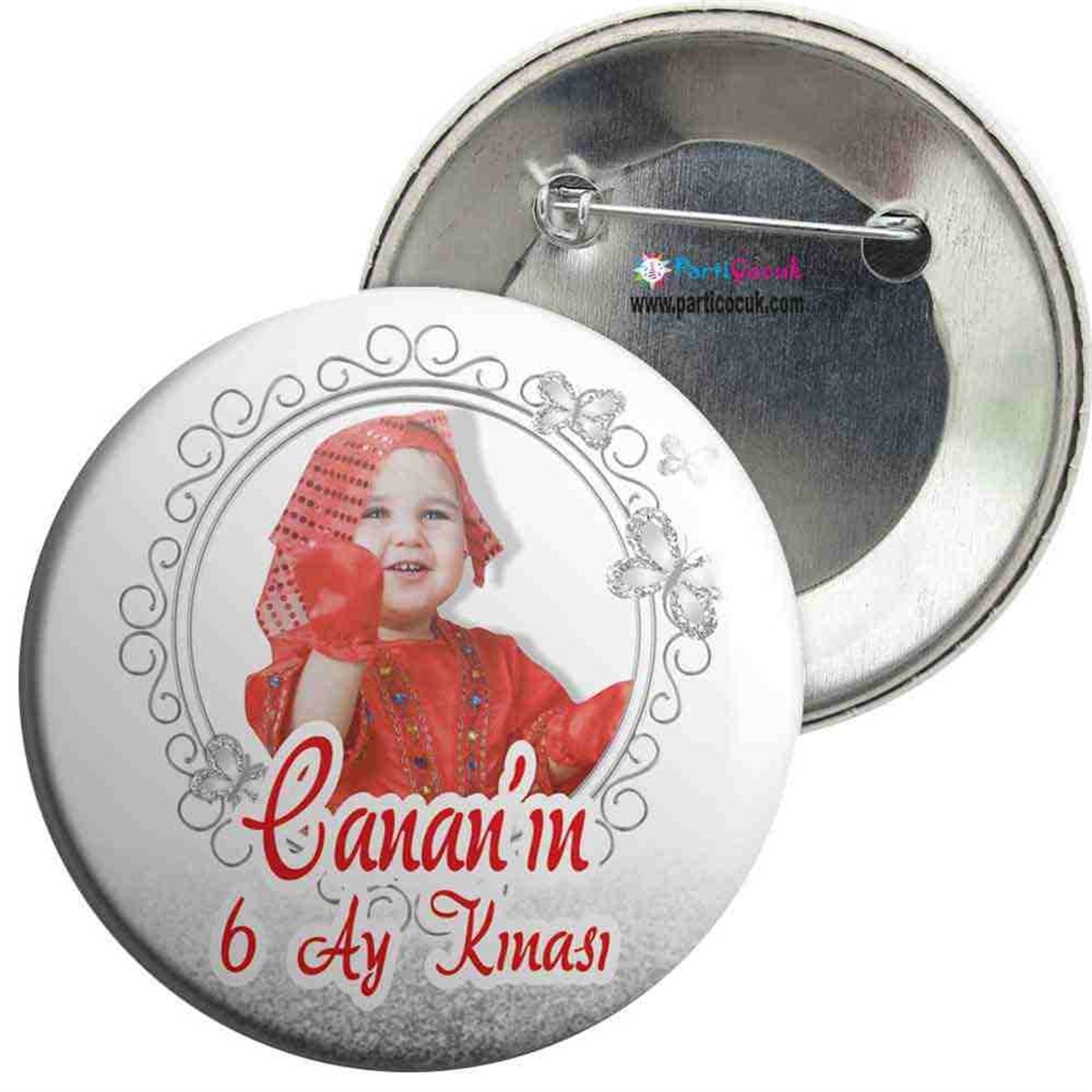 6 Ay Kınası Gümüş Kelebekli Parti İğneli Rozet