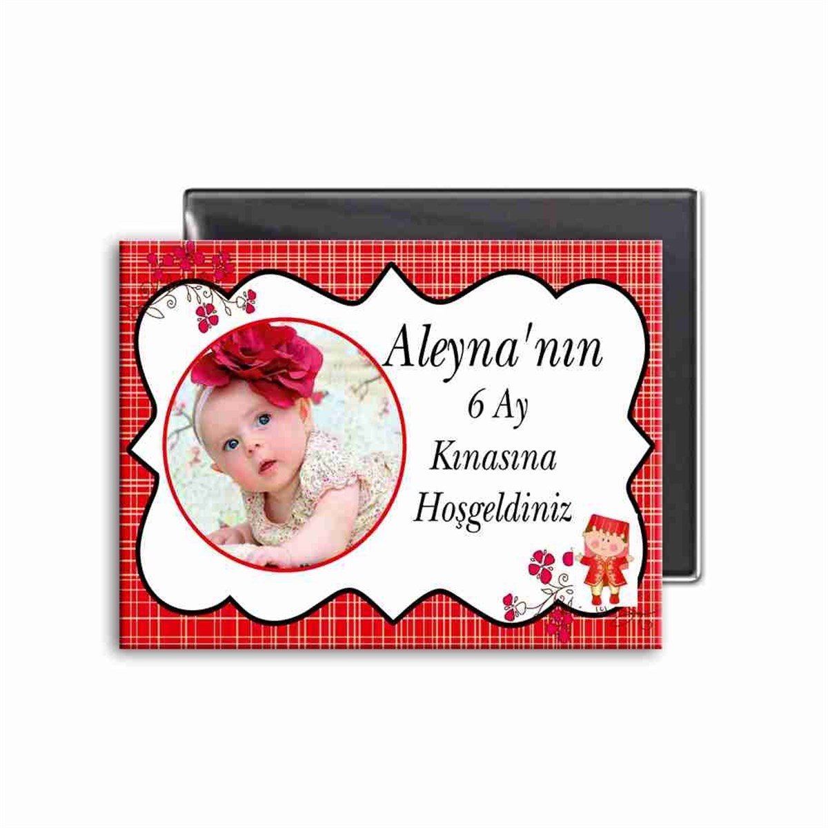 6 Ay Kınası Kırmızı Çizgili Çiçekli Parti Süsleri Buzdolabı Magneti (K6AY-MGNT-010)