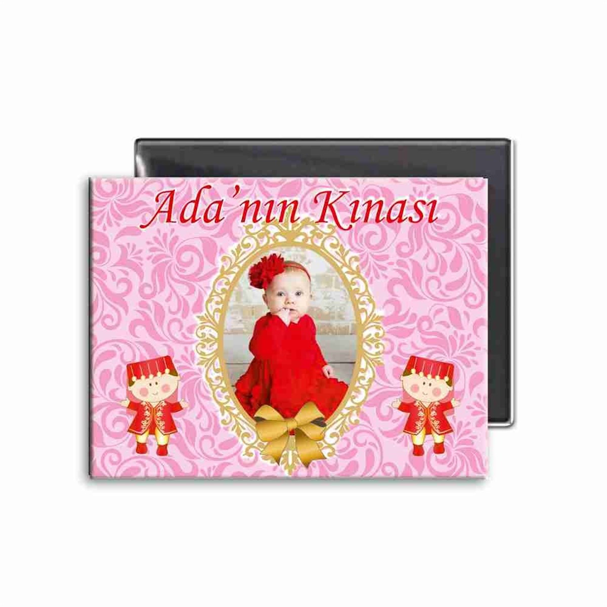 6 Ay Kınası Pembe Desenli Parti Süsü Buzdolabı Magneti (K6AY-MGNT-004)