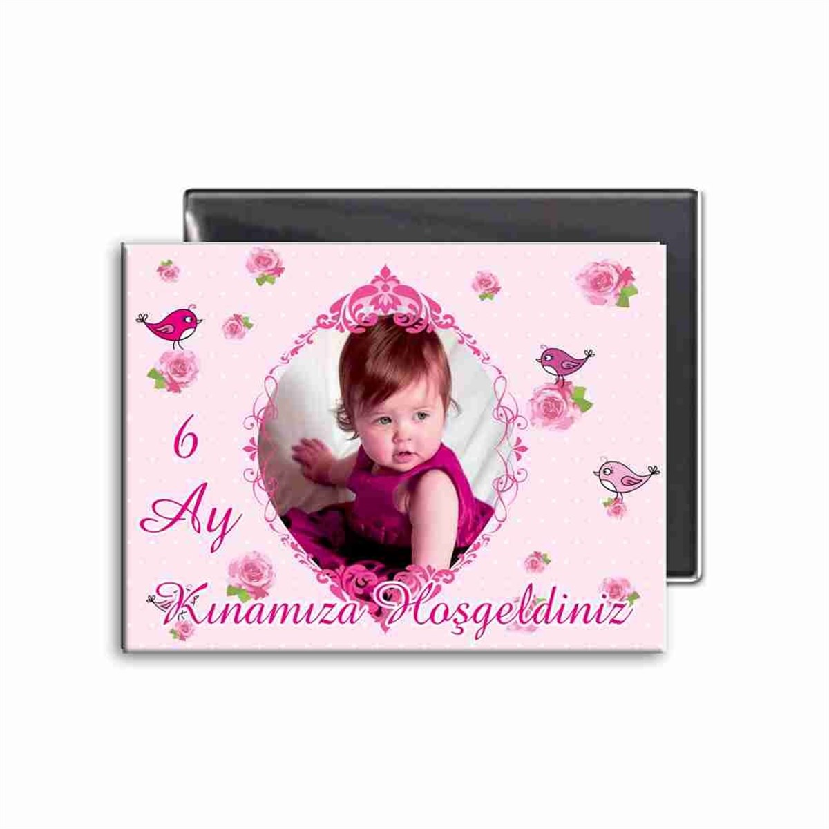6 Ay Kınası Pembe Kuşlu Tema Buzdolabı Magneti