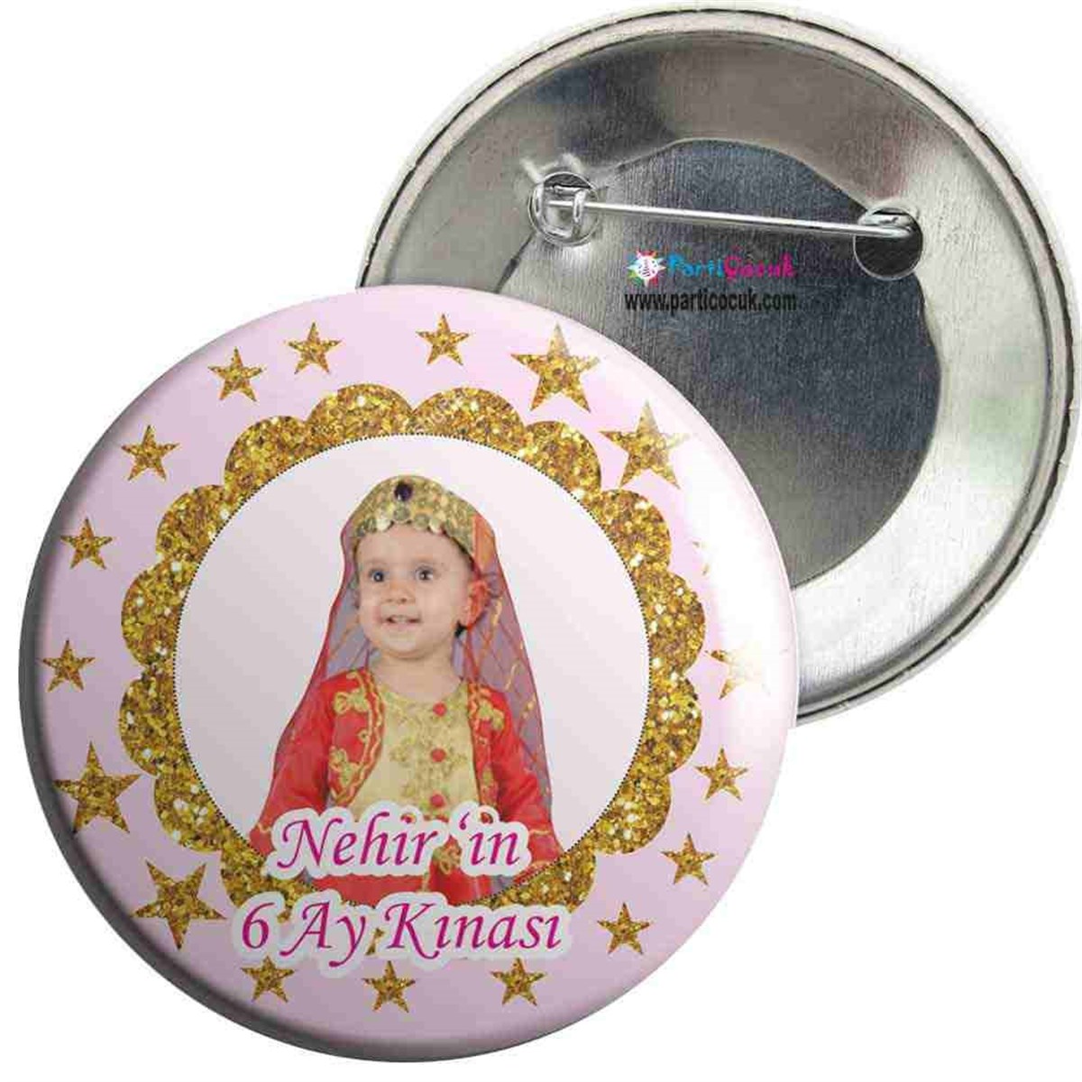 Altı Ay Kınası Gold Yıldızlı Parti İğneli Rozet