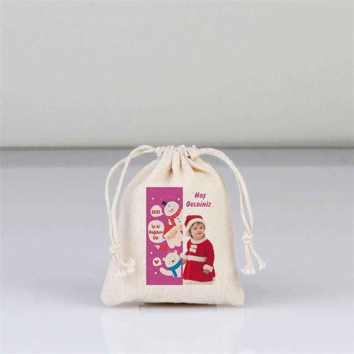 Kişiye özel yılbaşı kese üzerine baskı İçerisinde Elyaf ve lavanta bulunmaktadır.